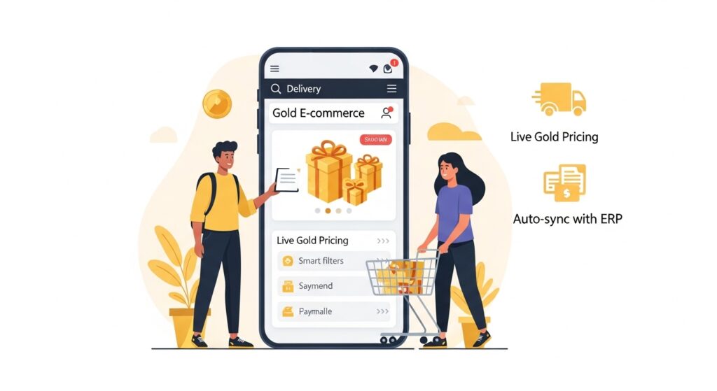 بواسطة حلول ديسم، يُمكنك إطلاق متجر ذهب إلكتروني على سلة أو زد خلال أيام معدودة، مع تكامل كامل مع نظامك المحاسبي والمالي. هذا التكامل يُمكّنك من عرض المنتجات بتسعير مباشر بناءً على سعر الذهب اللحظي، وإتمام عمليات البيع والدفع والتوصيل إلكترونيًا بسهولة وأمان.
