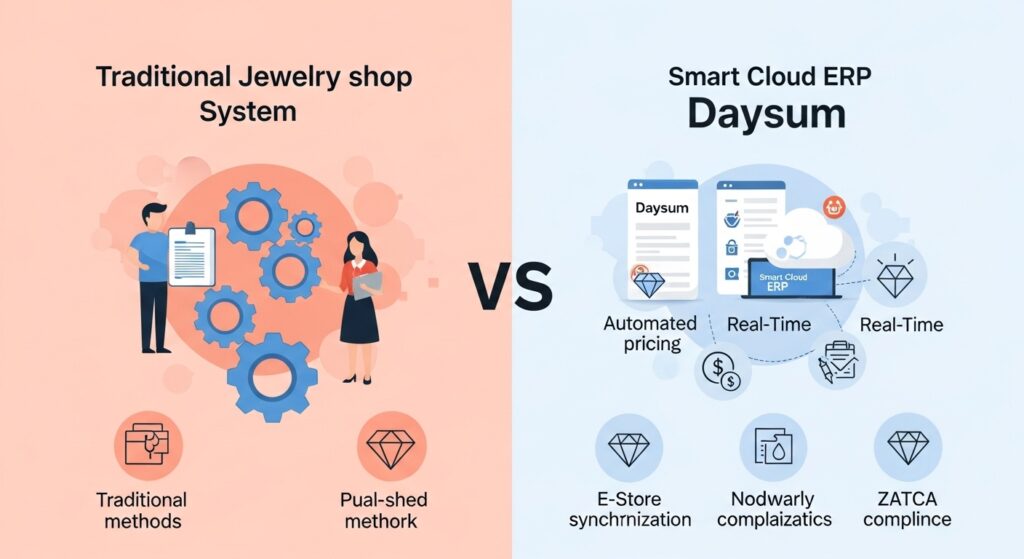 | العنصر | الحل التقليدي | نظام ديسم لإدارة محلات الذهب |