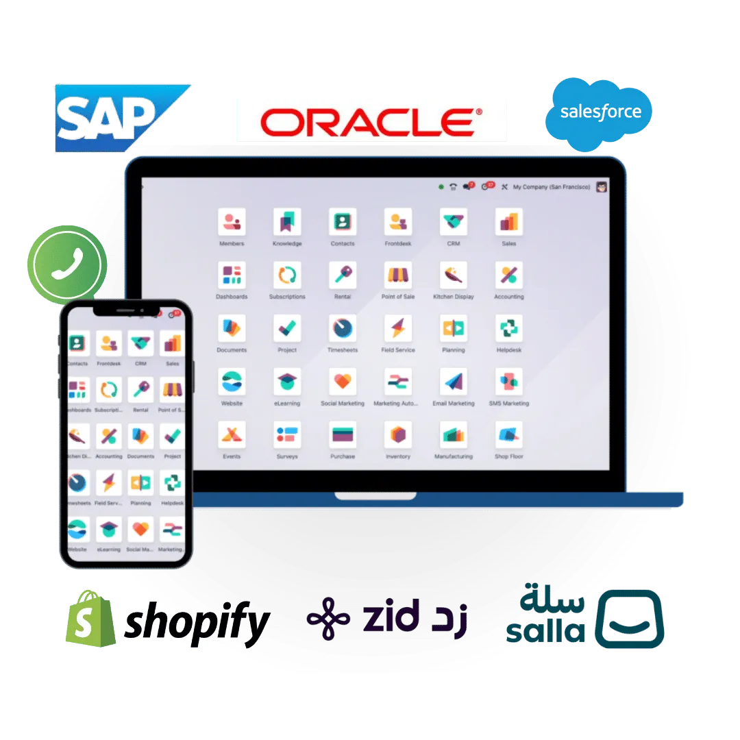 ربط ومزامنة متجرك على منصتي زد وسلة و شوبيفاي ، مع نظام أودو , ايًا كان نظامك الحالي دولي او محلي يمكن الربط الان مع اي موديول من نظام أودو أو الربط بالفوترة الالكترونية