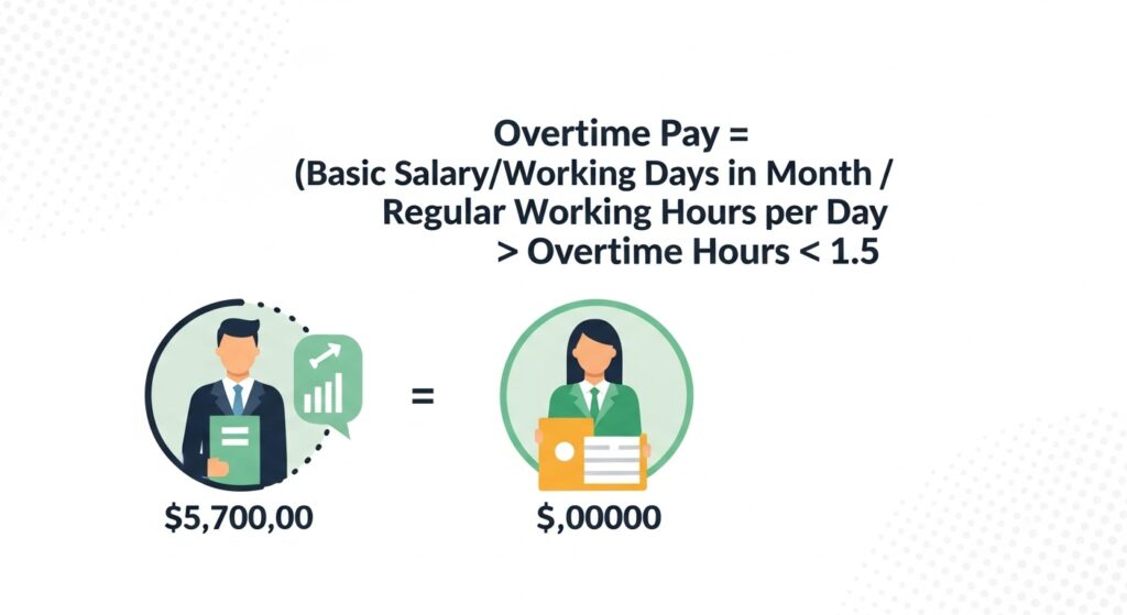- أجر ساعة الأوفرتايم = أجر الساعة العادي × 1.5